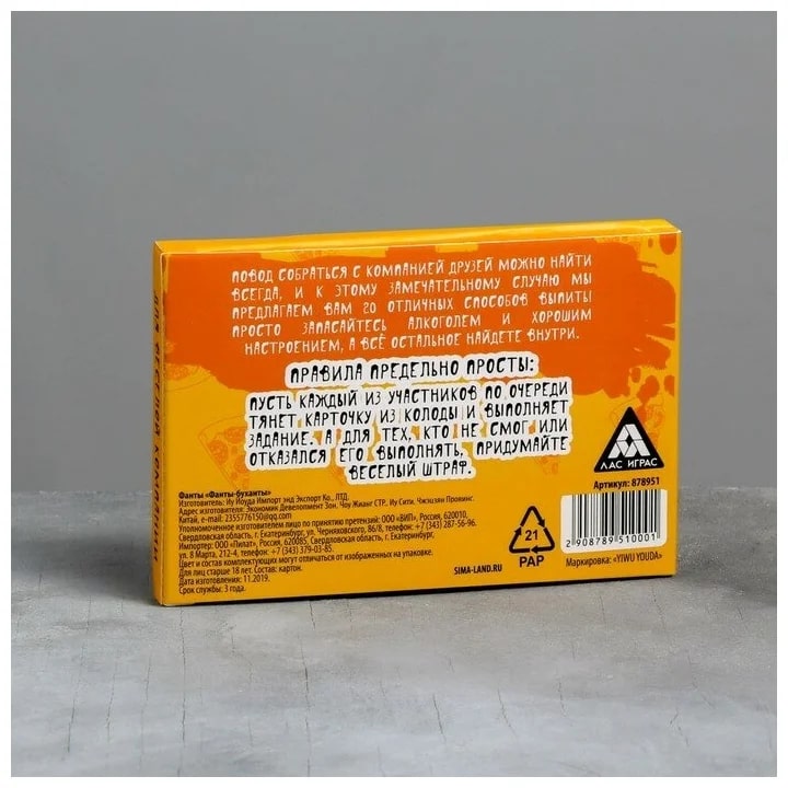Купить игра для компании "фанты буханты" 20 карт от 100 руб. с доставкой до пункта выдачи в Кеми. Интернет магазин ДекаМаркет. Оплата при получении.